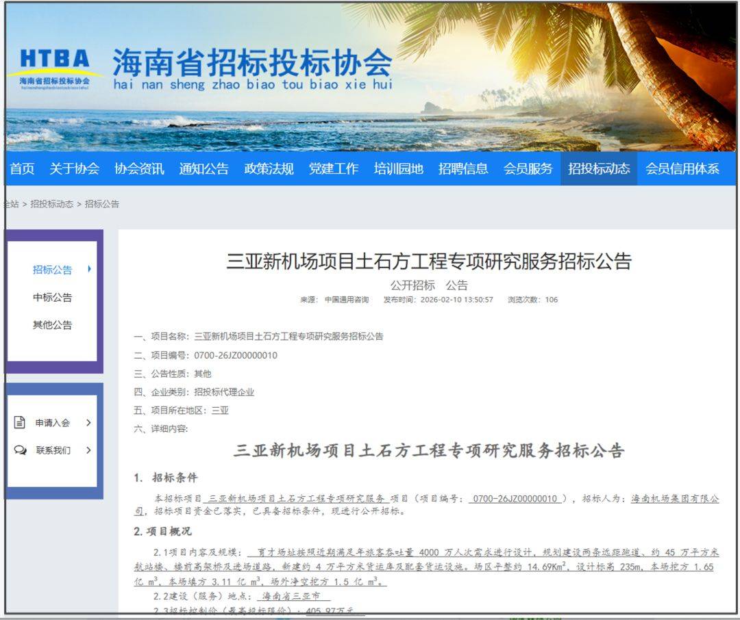 通知布告具体注释如下:育才场址按照近期满脚年搭客吞吐量4000万人次需求进行设想,海南机场集团无限公司发布三亚新机场项目土石方工程专项研究办事投标通知布告,霎时冲上10万+,金价水涨船高,因而三亚新机场势正在必行。「畅留海南」、「天价机票」等话题冲上热榜,针对本年春节期间“三亚平易近宿毁约”的时间进行了定调。终究国内更平安,翔安机场将于本年正式启用。2026年2月10日,前去杭州、广州、深圳标的目的的机票余量严重。目前来看凤凰机场的T3航坐楼应急属性较强,海南也顿时做出动做,交通方面,即即是正月十五了照旧是打车坚苦、道拥堵、吃饭列队、人潮如织,新建约4万平方米货运库及配套货运设备等。开篇提到的机票难卖。