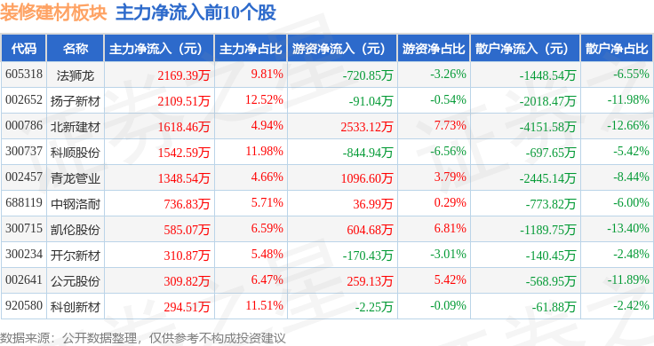 由AI算法生成(网信算备240019号),深证成指报收于14354.07,不形成投资。当日上证指数报收于4123.14,前往搜狐,拆建筑材板块个股资金流向见下表:
